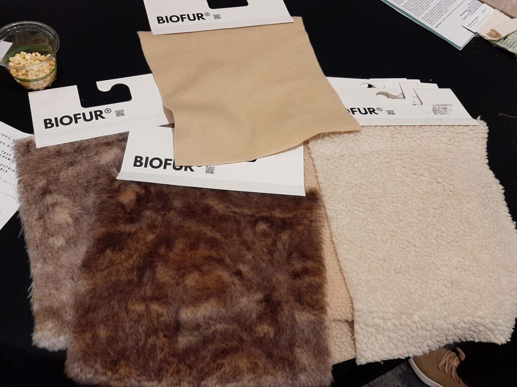 ET C attendees got a first-hand look at a variety of biomaterials now available from industry providers. Recently developed textiles from BIOFUR®, New York, N.Y., are made using Senbis Polymer Innovations yarn to create 98 percent bio-based, and 100 percent compostable products, including its BIOSherpa™ and BIOBunny™. Photo: Janet Preus.